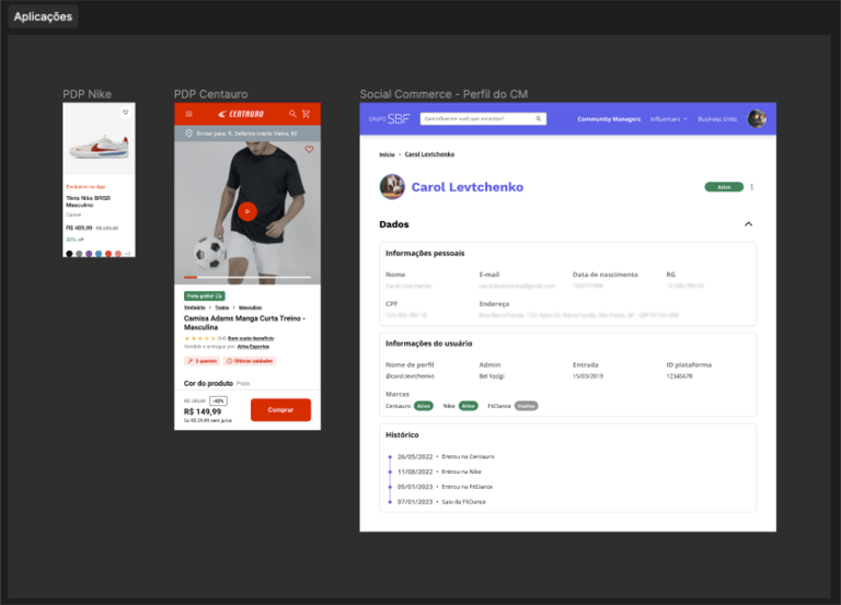 The design process involved initially sketching the components with a generic look, refining them with developers to assess technical feasibility, and subsequently customizing each component to meet the branding of the SBF Group, which at the time consisted of Centauro, Nike, NWB, and GrupoSBF (internal products).